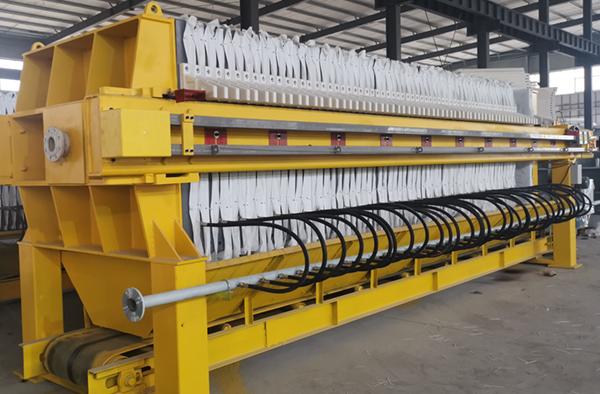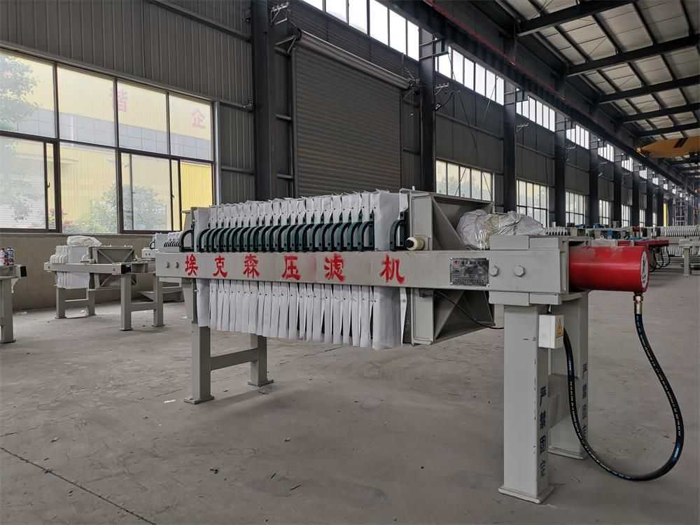 隔膜壓濾機(jī)和常規(guī)箱式壓濾機(jī)的主要區(qū)別在于,在濾板的兩側(cè)都增加了兩個(gè)彈性膜(復(fù)合橡膠膜是一個(gè)整體式膜。在操作期間,當(dāng)進(jìn)料完成時(shí),將高壓流體介質(zhì)注入膜中,并使整個(gè)膜膨脹以過濾濾餅,以進(jìn)一步使濾餅脫水,這是壓力過濾。在隔膜壓濾機(jī)運(yùn)行期間,液壓系統(tǒng)使用液壓油作為壓力載體來傳遞內(nèi)部壓力。